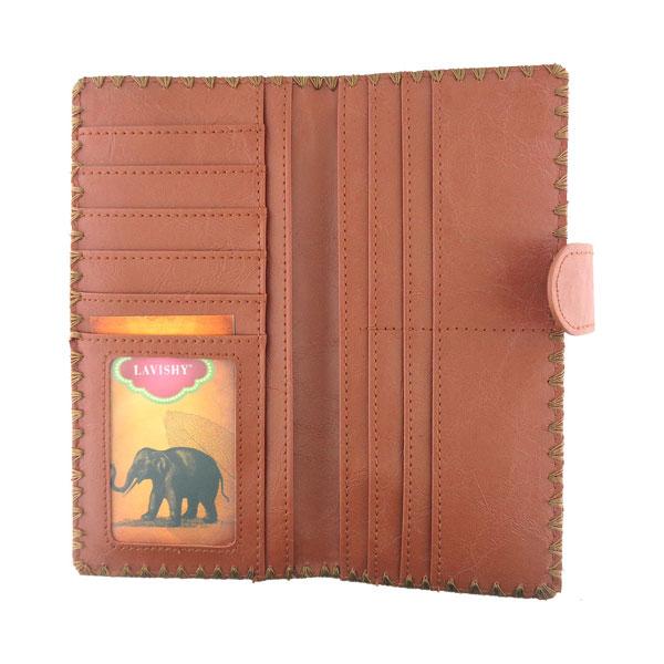- 1 photo ID pocket - 11 card slots - 1 built-in zipper pocket for change or receipts - 4 inside long slots for cash or a checkbook
